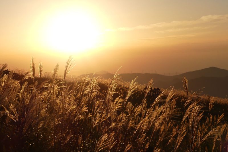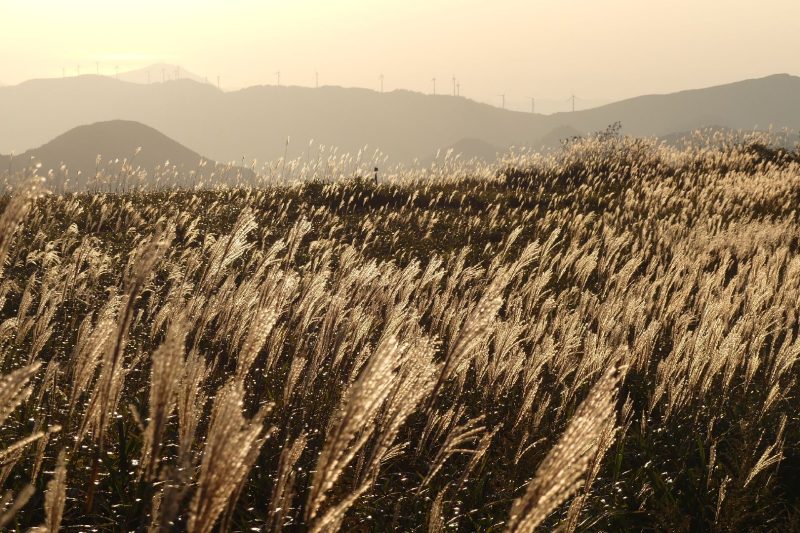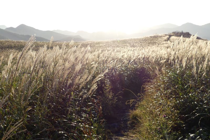 展望ロード沿いには秋にはススキが。特に夕陽や朝陽で照らされると黄金色に輝きます。